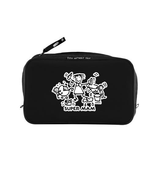 UAX Unisex sizes XL cosmetic bag with printing and pocket with design 1126 SUPER MAM in color BLACK