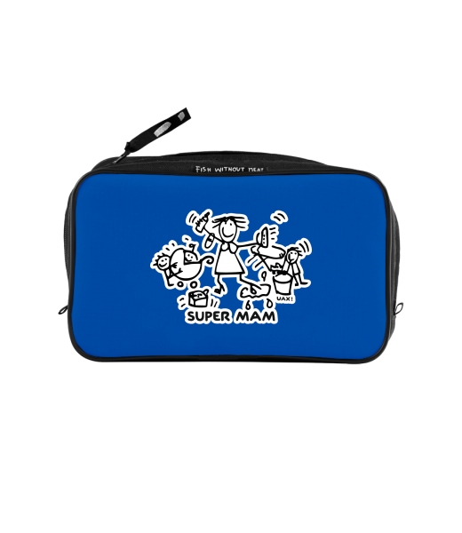 UAX Unisex sizes XL cosmetic bag with printing and pocket with design 1126 SUPER MAM in color CLASSIC BLUE