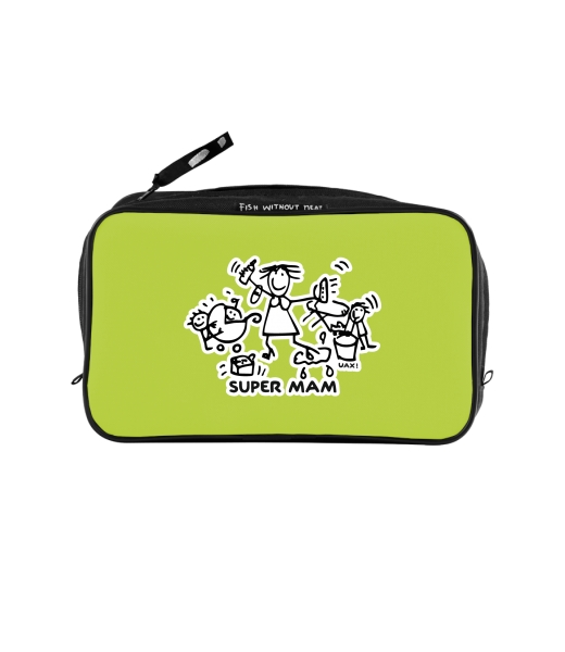 UAX Unisex sizes XL cosmetic bag with printing and pocket with design 1126 SUPER MAM in color GREEN LIMET