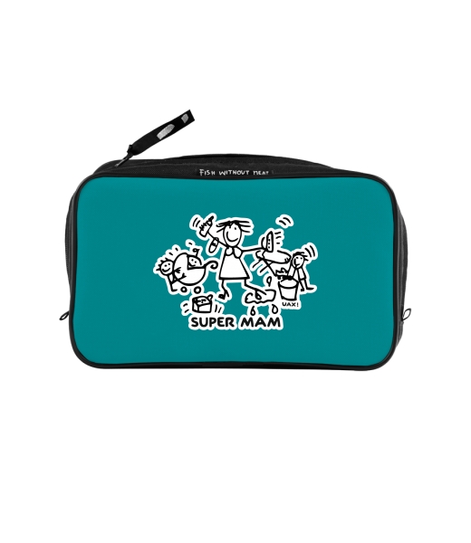 UAX Unisex sizes XL cosmetic bag with printing and pocket with design 1126 SUPER MAM in color TURQUOISE