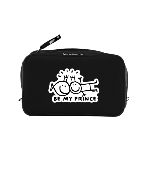 UAX Unisex sizes XL cosmetic bag with printing and pocket with design 1127 BE MY PRINCE in color BLACK
