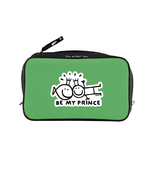 UAX Unisex sizes XL cosmetic bag with printing and pocket with design 1127 BE MY PRINCE in color BRIGHT GREEN