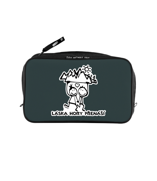 UAX Unisex sizes XL cosmetic bag with printing and pocket with design 1128 LÁSKA HORY PŘENÁŠÍ in color GREY INK