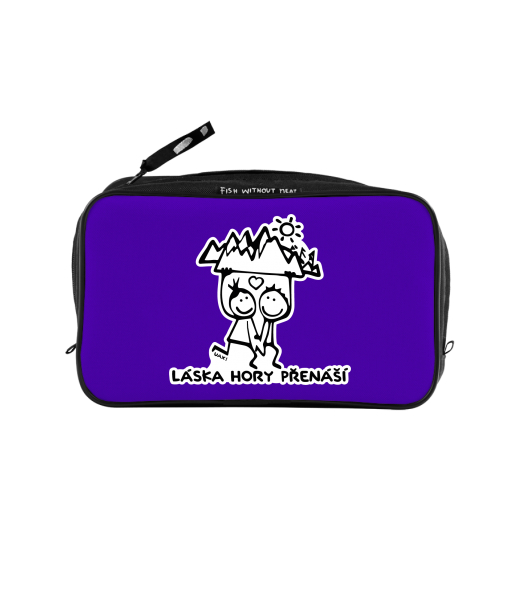UAX Unisex sizes XL cosmetic bag with printing and pocket with design 1128 LÁSKA HORY PŘENÁŠÍ in color VIOLET