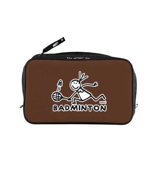 UAX Unisex sizes XL cosmetic bag with printing and pocket with design 1137 BADMINTON in color BROWN SUGAR