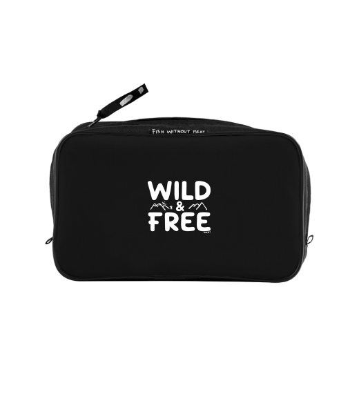 UAX Unisex sizes XL cosmetic bag with printing and pocket with design 1161 WILD AND FREE in color BLACK