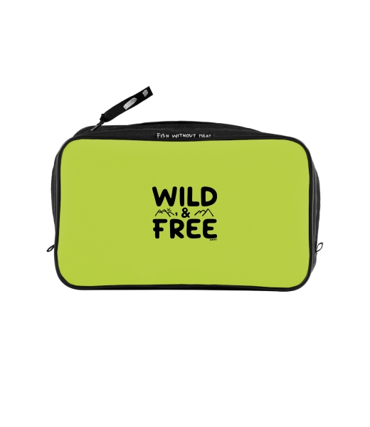 UAX Unisex sizes XL cosmetic bag with printing and pocket with design 1161 WILD AND FREE in color GREEN LIMET