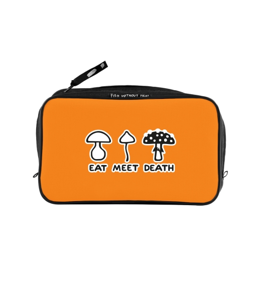 UAX Unisex sizes XL cosmetic bag with printing and pocket with design 1177 EAT MEET DEATH in color SIGNAL ORANGE