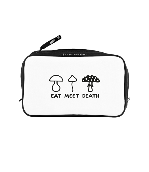 UAX Unisex sizes XL cosmetic bag with printing and pocket with design 1177 EAT MEET DEATH in color WHITE