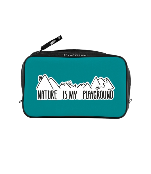 UAX Unisex sizes XL cosmetic bag with printing and pocket with design 1178 MY PLAYGROUND in color TURQUOISE