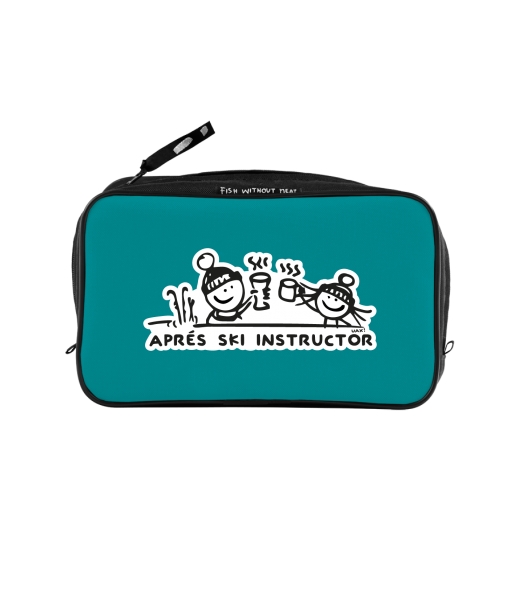 UAX Unisex sizes XL cosmetic bag with printing and pocket with design 1180 APRÉS SKI INSTRUCTOR in color TURQUOISE