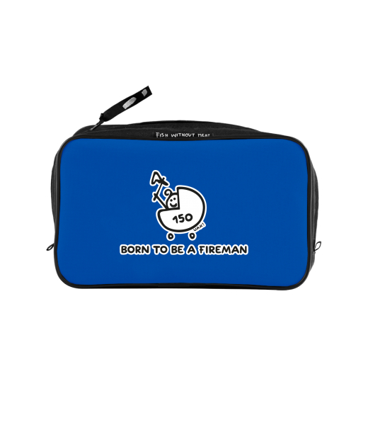 UAX Unisex sizes XL cosmetic bag with printing and pocket with design 1184 BORN TO BE A FIREMAN in color CLASSIC BLUE