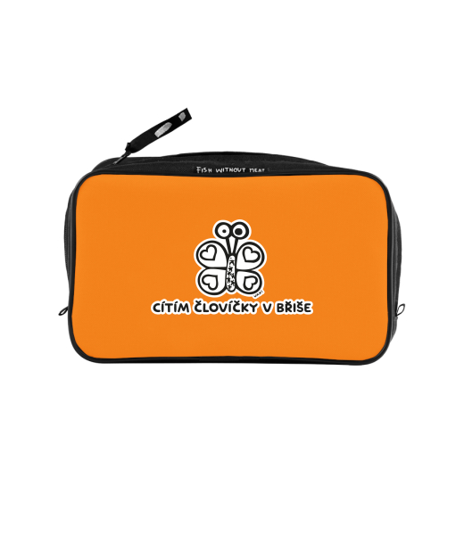 UAX Unisex sizes XL cosmetic bag with printing and pocket with design 1188 CÍTÍM ČLOVÍČKY V BŘIŠE in color SIGNAL ORANGE