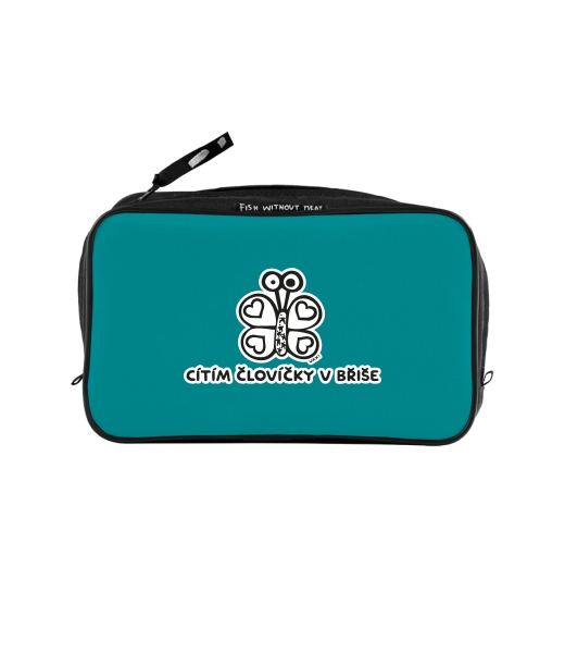 UAX Unisex sizes XL cosmetic bag with printing and pocket with design 1188 CÍTÍM ČLOVÍČKY V BŘIŠE in color TURQUOISE