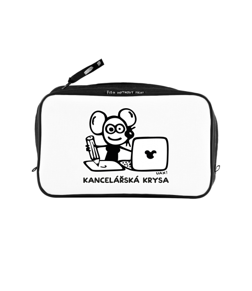 UAX Unisex sizes XL cosmetic bag with printing and pocket with design 1191 KANCELÁŘSKÁ KRYSA in color WHITE