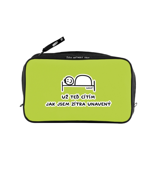 UAX Unisex sizes XL cosmetic bag with printing and pocket with design 1200 UŽ TEĎ CÍTÍM JAK JSEM ZÍTRA UNAVENÝ in color GREEN LIMET