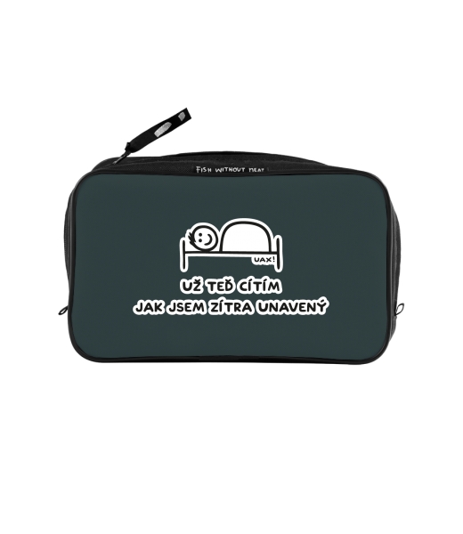 UAX Unisex sizes XL cosmetic bag with printing and pocket with design 1200 UŽ TEĎ CÍTÍM JAK JSEM ZÍTRA UNAVENÝ in color GREY INK