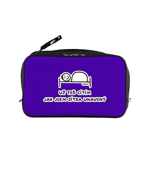 UAX Unisex sizes XL cosmetic bag with printing and pocket with design 1200 UŽ TEĎ CÍTÍM JAK JSEM ZÍTRA UNAVENÝ in color VIOLET