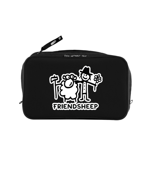UAX Unisex sizes XL cosmetic bag with printing and pocket with design 1205 FRIENDSHEEP in color BLACK