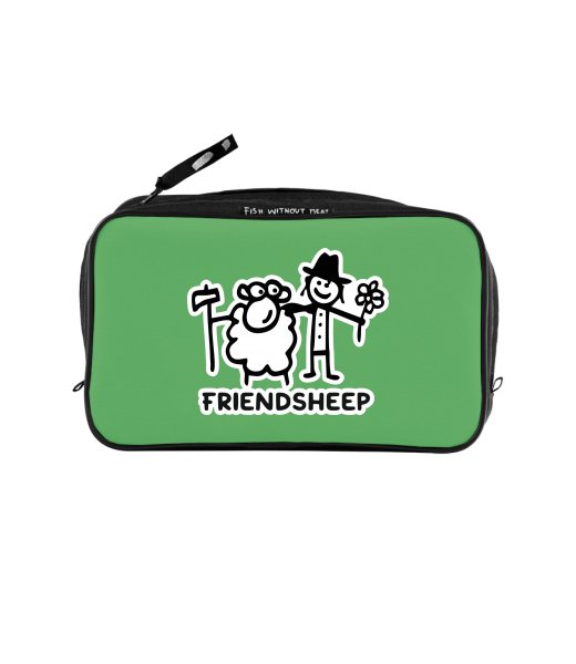 UAX Unisex sizes XL cosmetic bag with printing and pocket with design 1205 FRIENDSHEEP in color BRIGHT GREEN