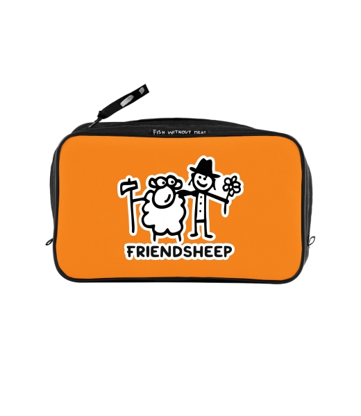 UAX Unisex sizes XL cosmetic bag with printing and pocket with design 1205 FRIENDSHEEP in color SIGNAL ORANGE