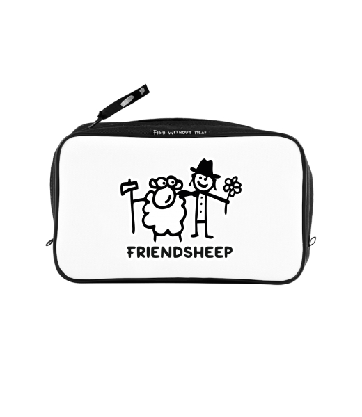 UAX Unisex sizes XL cosmetic bag with printing and pocket with design 1205 FRIENDSHEEP in color WHITE