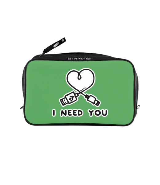 UAX Unisex sizes XL cosmetic bag with printing and pocket with design 1206 I NEED YOU 2 in color BRIGHT GREEN
