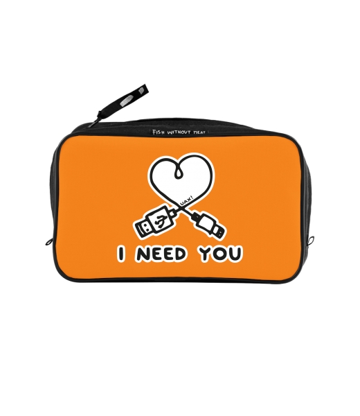 UAX Unisex sizes XL cosmetic bag with printing and pocket with design 1206 I NEED YOU 2 in color SIGNAL ORANGE