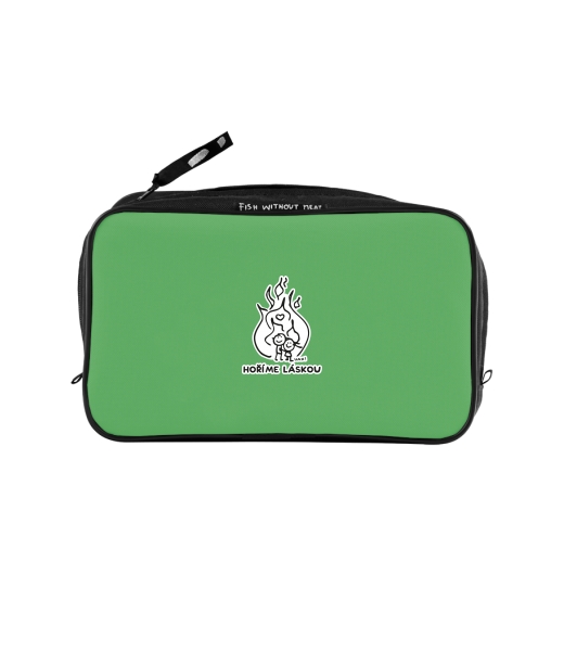 UAX Unisex sizes XL cosmetic bag with printing and pocket with design 1208 HOŘÍME LÁSKOU in color BRIGHT GREEN