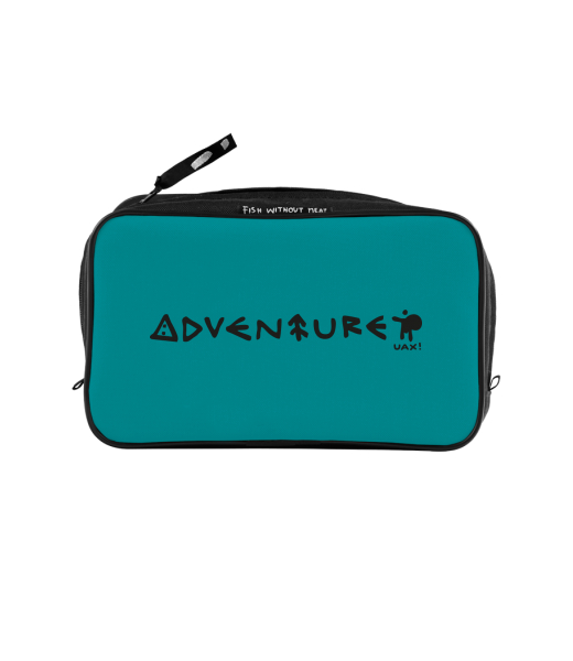 UAX Unisex sizes XL cosmetic bag with printing and pocket with design 1212 ADVENTURE in color TURQUOISE