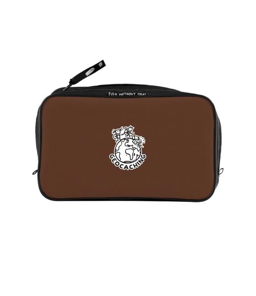 UAX Unisex sizes XL cosmetic bag with printing and pocket with design 1215 GEOCACHING in color BROWN SUGAR