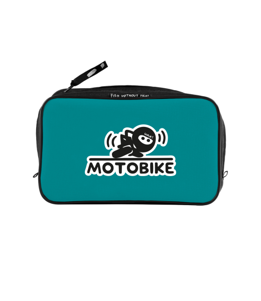 UAX Unisex sizes XL cosmetic bag with printing and pocket with design 1216 MOTOBIKE in color TURQUOISE