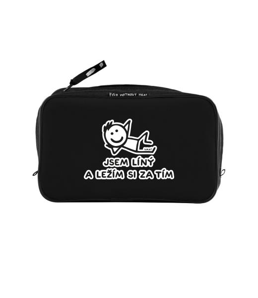 UAX Unisex sizes XL cosmetic bag with printing and pocket with design 1217 JSEM LÍNÝ A LEŽÍM SI ZA TÍM in color BLACK