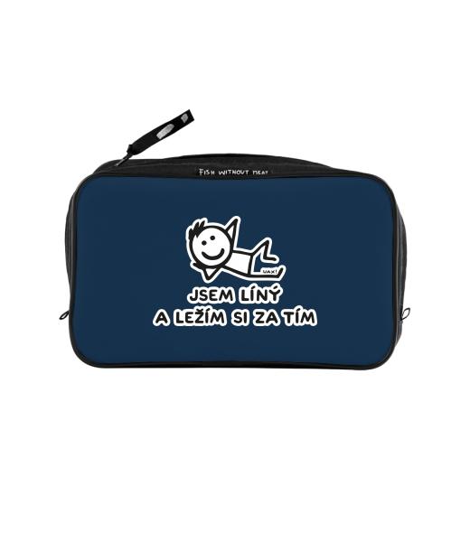 UAX Unisex sizes XL cosmetic bag with printing and pocket with design 1217 JSEM LÍNÝ A LEŽÍM SI ZA TÍM in color MIDNIGHT BLUE