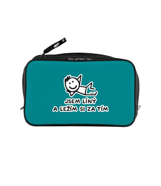 UAX Unisex sizes XL cosmetic bag with printing and pocket with design 1217 JSEM LÍNÝ A LEŽÍM SI ZA TÍM in color TURQUOISE