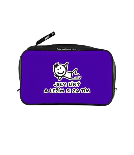 UAX Unisex sizes XL cosmetic bag with printing and pocket with design 1217 JSEM LÍNÝ A LEŽÍM SI ZA TÍM in color VIOLET