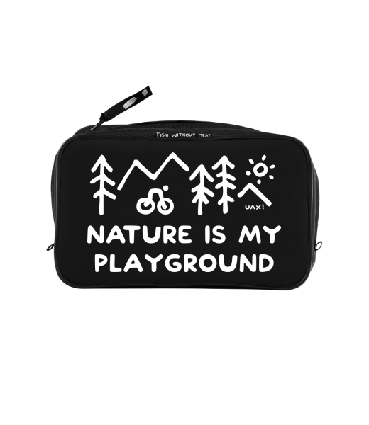 UAX Unisex sizes XL cosmetic bag with printing and pocket with design 1223 NATURE IS MY PLAYGROUND in color BLACK