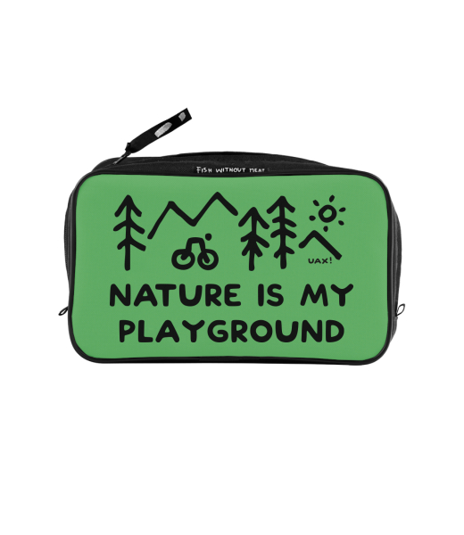 UAX Unisex sizes XL cosmetic bag with printing and pocket with design 1223 NATURE IS MY PLAYGROUND in color BRIGHT GREEN