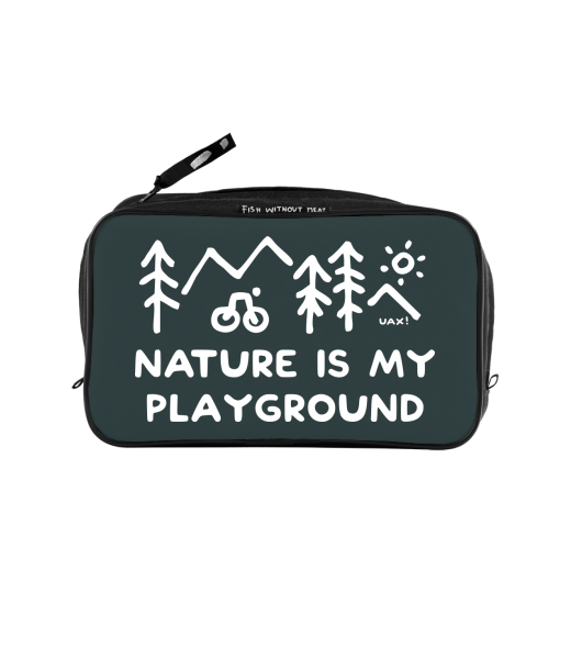 UAX Unisex sizes XL cosmetic bag with printing and pocket with design 1223 NATURE IS MY PLAYGROUND in color GREY INK