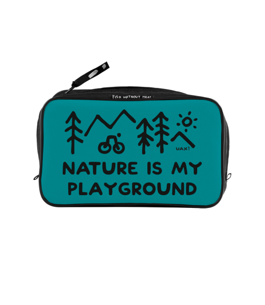 UAX Unisex sizes XL cosmetic bag with printing and pocket with design 1223 NATURE IS MY PLAYGROUND in color TURQUOISE