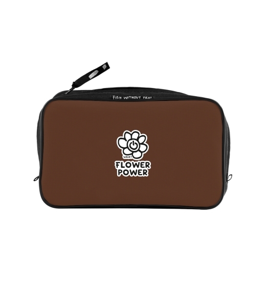 UAX Unisex sizes XL cosmetic bag with printing and pocket with design 1227 FLOWER POWER in color BROWN SUGAR