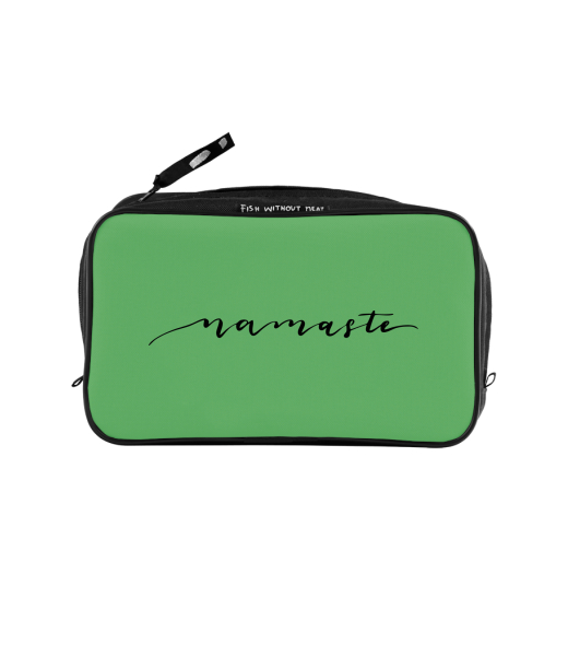 UAX Unisex sizes XL cosmetic bag with printing and pocket with design 1234 NAMASTE in color BRIGHT GREEN
