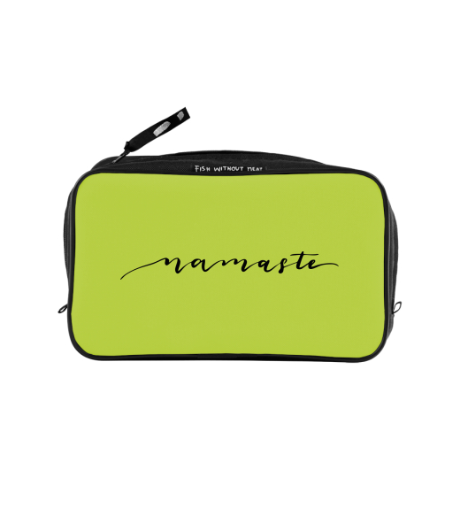 UAX Unisex sizes XL cosmetic bag with printing and pocket with design 1234 NAMASTE in color GREEN LIMET