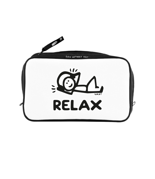 UAX Unisex sizes XL cosmetic bag with printing and pocket with design 1236 RELAX in color WHITE