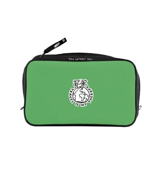 UAX Unisex sizes XL cosmetic bag with printing and pocket with design 1240 TRAVEL IS MY THERAPY in color BRIGHT GREEN