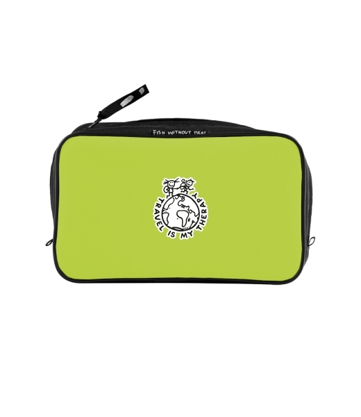 UAX Unisex sizes XL cosmetic bag with printing and pocket with design 1240 TRAVEL IS MY THERAPY in color GREEN LIMET
