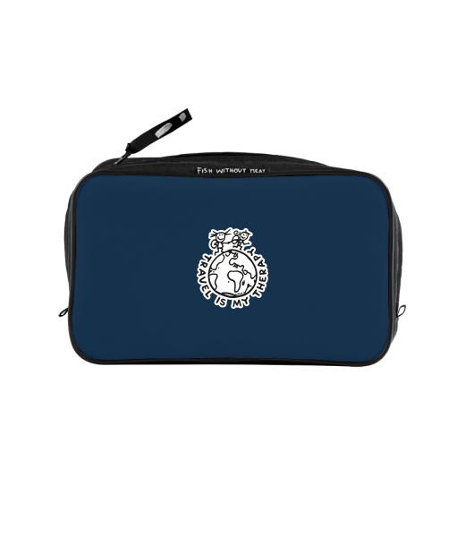 UAX Unisex sizes XL cosmetic bag with printing and pocket with design 1240 TRAVEL IS MY THERAPY in color MIDNIGHT BLUE