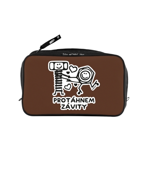 UAX Unisex sizes XL cosmetic bag with printing and pocket with design 1242 PROTÁHNEM ZÁVITY in color BROWN SUGAR