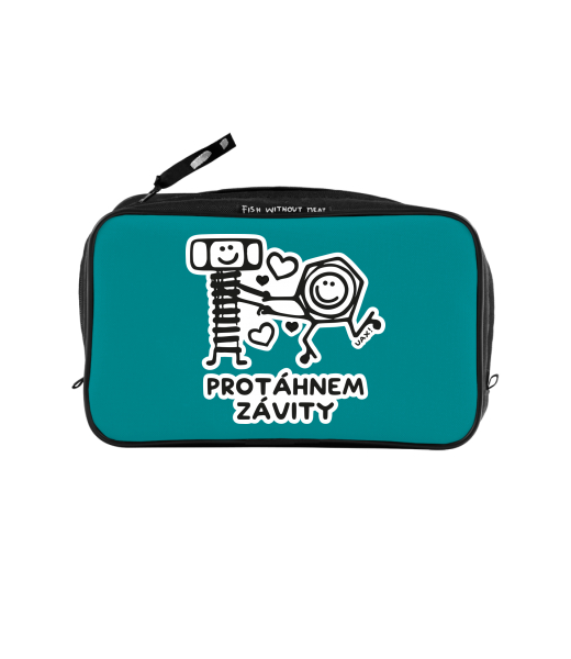 UAX Unisex sizes XL cosmetic bag with printing and pocket with design 1242 PROTÁHNEM ZÁVITY in color TURQUOISE