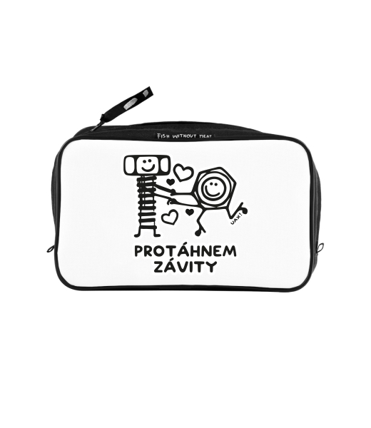 UAX Unisex sizes XL cosmetic bag with printing and pocket with design 1242 PROTÁHNEM ZÁVITY in color WHITE